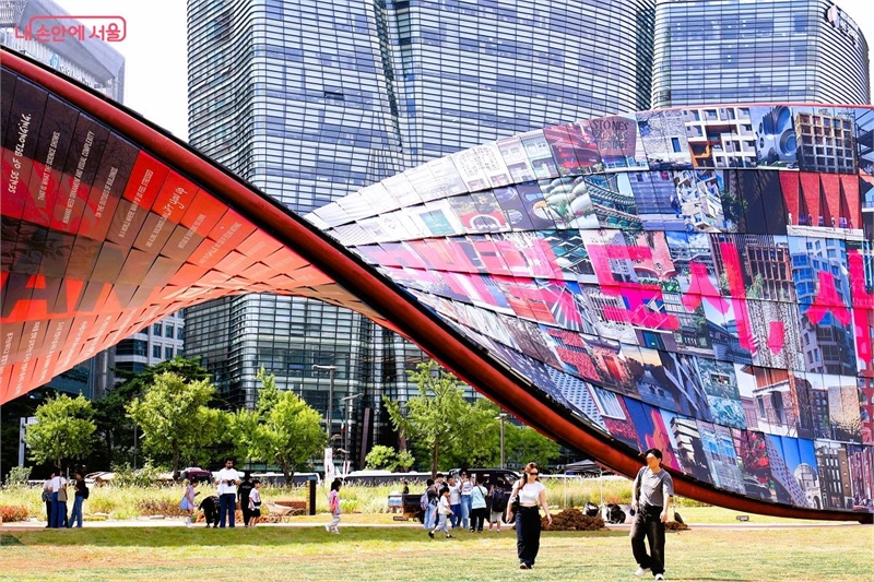 작품의 두 개 면이 공중에서 뒤틀려 다시 지면과 만나며 오늘의 서울과 미래의 서울의 모습을 보여주고 있다. ©이봉덕
